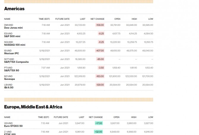 앞서 20일 아침에 마감한 뉴욕증시는 비트코인이 크게 하락하면서 위험자산에 대한 우려가 부각돼 떨어졌다. 연방공개시장위원회(FOMC) 의사록에서 위원들이 채권 매입 프로그램에 대한 축소 논의 가능성을 시사한 점도 주가에 하락 압력으로 작용했다. 뉴욕증권거래소에서 다우존스30산업평균지수는 전장보다 164.62포인트(0.48%) 하락한 33,896.04로 마쳤다. 스탠더드앤드푸어스(S&P)500지수는 12.15포인트(0.29%) 떨어진 4,115.68로, 기술주의 나스닥지수는 전장보다 3.90포인트(0.03%) 밀린 13,299.74로 마감했다.