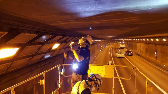 국토안전관리원 관계자들이 터널 내부를 정밀안전진단하는 모습. 사진=국토안전관리원