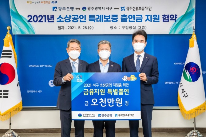 한편, 광주은행은 올해 광주광역시 동구, 북구, 광산구에 각 5천만원씩 출연하여 각 구별‘소상공인 특례보증 협약대출’을 시행한바 있다.