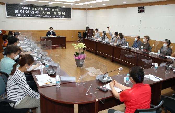 이미지 확대보기강진 맛집 육성사업은 민선 7기 군정 핵심사업으로 음식 맛, 상차림, 경영진단, 위생환경 등 서비스 전반에 대하여 문제점을 파악하고, 맞춤형 심화 코칭을 통해 음식점의 수준을 끌어올려 지역상권의 활성화를 도모하기 위해 추진하고 있다.
