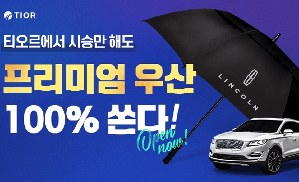 민앤지(대표 이현철)의 실시간 통합 시승 플랫폼 '티오르(TIOR: TRY IT ON THE ROAD)'가 시승 고객을 대상으로 경품 이벤트를 진행한다고 1일 밝혔다.이번 이벤트에서 티오르는 앱에서 시승 예약을 신청하고 실제 시승까지 마친 고객들을 대상으로 포드,링컨 등 브랜드의 프리미엄 우산을 선물한다.