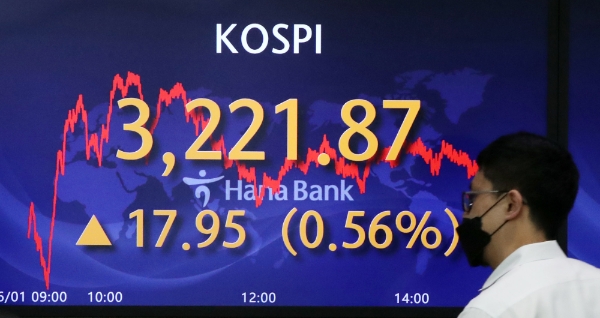이미지 확대보기이날 한국거래소에 따르면 코스피는 0.56%(17.95포인트) 오른 3221.87에 거래를 마쳤다. 사흘째 상승이다. 종가 기준으로는 지난달 10일 기록한 사상 최고치(3249.30) 다음으로 높다.
