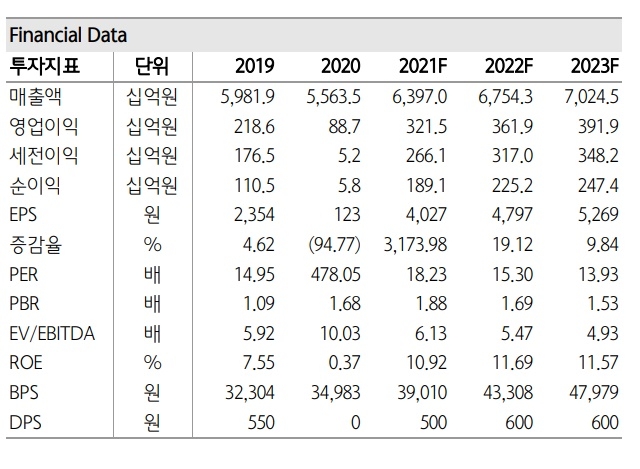 메리츠증권은 ADAS 사업 물적 분할 결정으로 일시 주가 조정이 불가피하지만 향후 실적 개선 추세가 뚜렷한 만큼 기업가치가 개선될 것으로 전망했다. 목표 주가는 9만 원, 투자 의견은 '매수'를 유지했다.