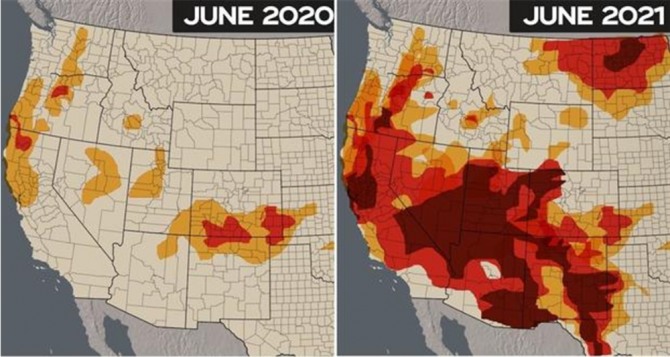 지난 2년 동안 미 서부는 역사상 최악의 가뭄과 화재에 고통을 겪었다. 2020년에 800만 에이커(1에이커는 1200평)가 넘는 대지가 불에 탔으며 캘리포니아와 콜로라도는 사상 최대 규모의 화재로 고통을 겪었다.
