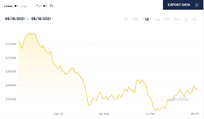코인데스크에 따르면, 24시간 동안 비트코인 시세는 3만4894.77달러에서 3만8018.94달러 범위에서 움직였다.