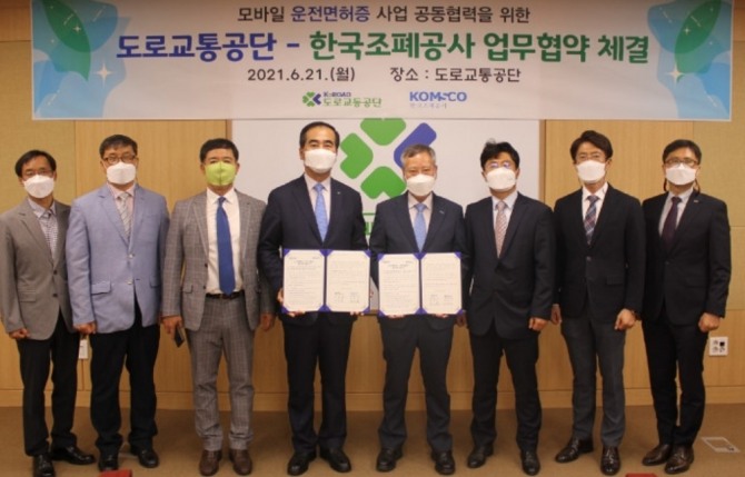 이미지 확대보기두 기관은 21일 강원도 원주 도로교통공단 본사에서 반장식 조폐공사 사장과 이주민 도로교통공단 이사장이 참석한 가운데 ‘모바일 운전면허증사업 공동협력’ 업무협약(MOU)을 맺었다.