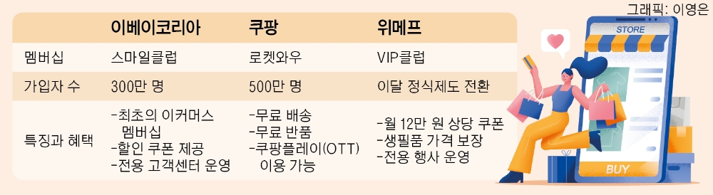 이에 이커머스 업체들은 충성 고객을 모으기 위한 멤버십 서비스 강화에 나서고 있다. 대표적인 것은 이베이코리아의 '스마일클럽'이다. 2017년 출시된 이커머스 업계 최초의 멤버십 제도로, 현재 약 300만 명의 회원을 보유하고 있다. 연회비 3만 원으로 할인 쿠폰, 전용 고객센터 별도 운영 등 다양한 혜택을 누릴 수 있어 충성 고객층이 두터운 편이다. 지난해 이베이코리아의 호실적을 이끈 주요 요인으로 꼽히기도 한다.