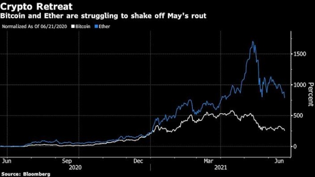 일부 논평가들은 중국의 해시율, 코인 채굴과 블록체인 거래 처리에 사용되는 계산력이 더 가혹한 규제 감독 속에서 시들해지고 있다고 말했다. 암호 화폐 수탁자들은 또한 소위 탈중앙화 금융, 즉 DeFi 애플리케이션에서 사용되는 토큰의 감소와 씨름하고 있다. 디파이 앱은 은행 등 중개인을 이용하지 않고도 블록체인 기술을 이용해 서로 직접 대출, 대출, 거래, 보험 가입 등을 할 수 있다.