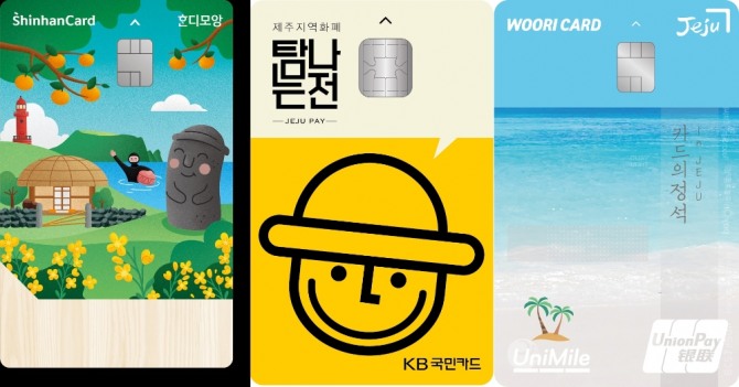 KB국민카드는 제주도 지역 화폐인 ‘탐나는전’과 체크카드 기능을 한 장의 카드에 담은 하이브리드(Hybrid) 체크카드 ‘KB국민 탐나는전 체크카드’를 판매하고 있다.