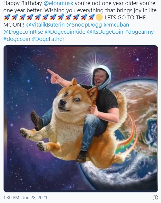 트위터를 기반으로 세계에세 가장 영향력 있는 ‘1인 미디어’라는 위상에 어울리게 머스크의 50세 생일을 축하는 메시지가 온라인 세상을 뒤덮고 있다. 특히 머스크가 가격 급등을 부추긴 가상화폐 도지코인에 투자하는 사람들이 열광적으로 반응하고 있다.