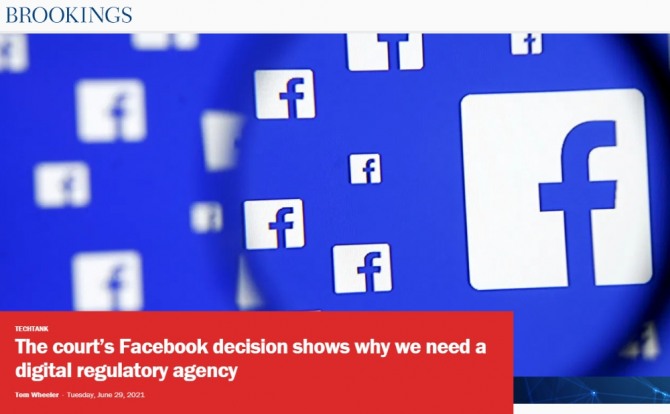 그러나 이번 결정은 첨단 기술에 기반한 IT기업을 다스리기에는 미국의 현행 반독점 관련 법규가 시대에 뒤떨어져 있다는 지적이 나오고 있다. 문제를 제기한 곳은 미국에서 영향력이 가장 큰 싱크탱크로 꼽히는 브루킹스연구소.