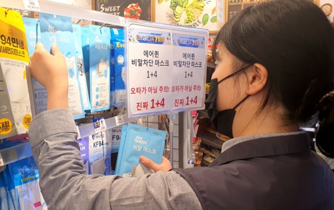 이미지 확대보기이마트24는 최대 성수기인 7월을 맞아 ‘1+4’ 할인 행사를 마련했다. 오는 7월 7일까지 ‘에어퀸 KF-AD 비말차단마스크’를 1개 가격에 5개 제공한다.