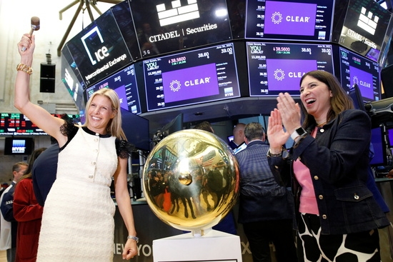 카린 세이드만 베커 클리어 시큐어 최고경영자(CEO)와 스테이시 커닝햄 뉴욕증권거래소 CEO가 30일(현지 시각) 클리어 시큐어 IPO를 함께 축하하고 있다. 사진=로이터