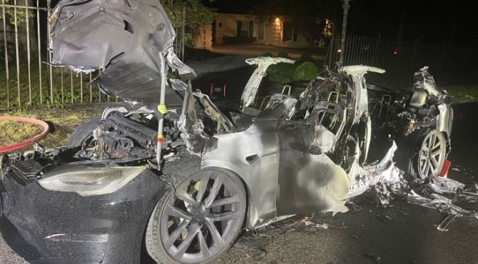 화재가 난 테슬라 차주 측 변호인은 CNBC와의 인터뷰에서 2021년형 S 플레이드 뒷면에서 연기가 나는 것을 발견하고 문을 열고 내리려 했지만 잠금장치가 오작동한 것으로 보였고 강제로 차에서 나와야 했다고 말했다. 그가 차에서 내린 직후, 차가 움직이기 시작하면서 불길이 차를 뒤덮었다고 한다. 찰스 맥가비 지역 소방서장은 두 명의 소방관이 3시간 넘게 현장에서 화재를 처리했다고 말했다.