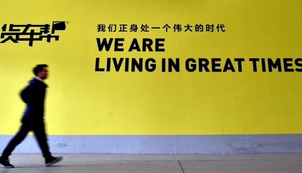 중국 구이저우(貴州)성내 화물차기사 매칭앱 워처방의 광고판. 사진=로이터이미지 확대보기