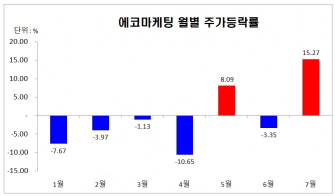 이미지 확대보기에코마케팅은 이날 '2021년 코스닥 라이징스타' 종목 중 주가상승률이 가장 뛰어났다.