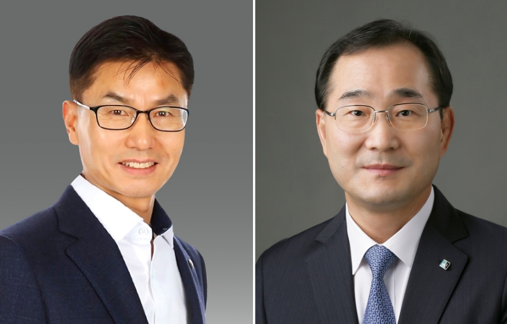 박청준 기업은행 신임 혁신금융그룹장(왼쪽)과 문창환 기업은행 디지털그룹장. 사진=기업은행이미지 확대보기