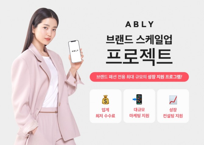 이미지 확대보기에이블리는 브랜드 성장 지원을 위해 100억 원 규모 '브랜드 스케일업 프로젝트'를 시행하고 함께할 브랜드 파트너사를 모집한다고 24일 밝혔다. 브랜드 스케일업 프로젝트 기간 내 입점한 브랜드에게 2022년 봄·여름 시즌까지 업계 최저 수수료 보장한다.