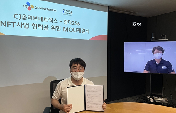 이미지 확대보기CJ올리브네트웍스는 용산구 트윈시티 본사에서 비대면 방식으로 람다256과 '국내·외전략적 NFT 사업협력(MOU)'을 체결했다고 26일 밝혔다.