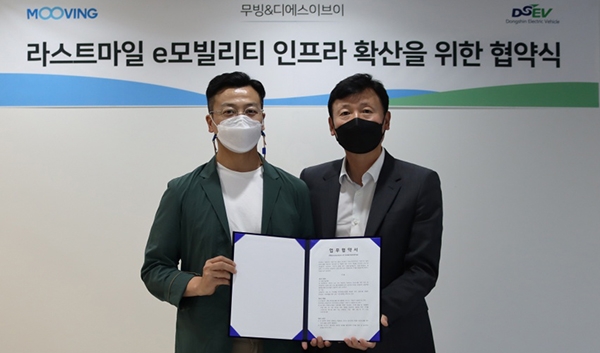 무빙(대표 이상명)은 지난 23일 디에스이브이(대표 임춘우, 이하 DSEV)와 '라스트마일 e모빌리티 인프라 확산을 위한 협약식'을 체결했다고 26일 밝혔다.
