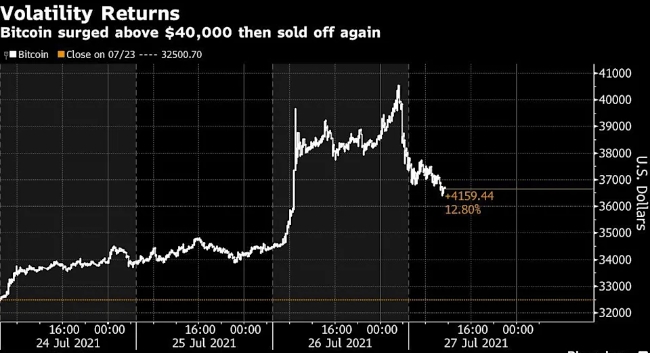 이미지 확대보기이러한 움직임은 비트코인이 최신 ‘롤러코스터 타기’가 실패하기 시작했음을 시사한다. 비트코인을 포함한 주요 코인들은 암호화폐와 관련된 아마존 임원 채용 공고에 힘입어 가격이 급등했다. 회사 대변인이 올해 결제를 위해 토큰이 허용될 것이란 소문을 부인한 후 상승 랠리 여력이 몇 시간 후 빠르게 소진됐다.