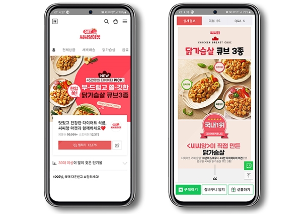 이번에 선보인 '씨씨앙마켓'은 닭가슴살, 두유, 채소 퓨레 등 건강한 식단을 제공하는 다이어트 식품 전문몰이다.