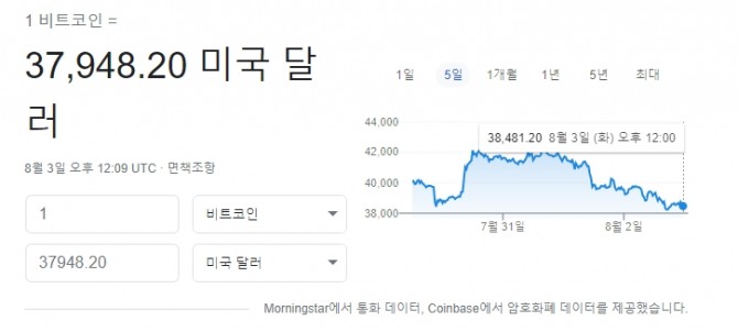 가상화폐 비트코인은 소폭 떨어졌다. 빗썸에서 1비트코인은 4463만대에서 거래됐다. <비트코인 시세 별표참조> 가상화폐는 거래소 단위로 거래 가격이 매겨지기 때문에 같은 종류의 가상화폐라도 거래소에 따라 가격에 차이가 있다. 이더리움과 도지코인도 떨어졌다.