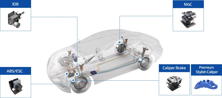 만도가 생산하는 자동차 주요 부품들. 사진=만도