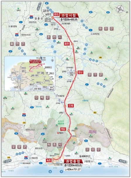 국가철도공단 강원 춘천~속초 철도건설사업 노선도. 사진=국가철도공단