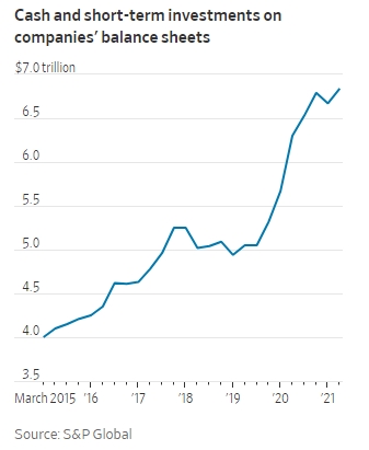 S&P 글로벌의 가레스 윌리엄스 기업조사 본부장은 “이런 추세라면 S&P 500대 기업들의 Gareth 교수현금보유액이 올 연말에는 7조1000억달러(약 8292조)에 이르러 새기록을 세울 것으로 보인다”고 내다봤다.