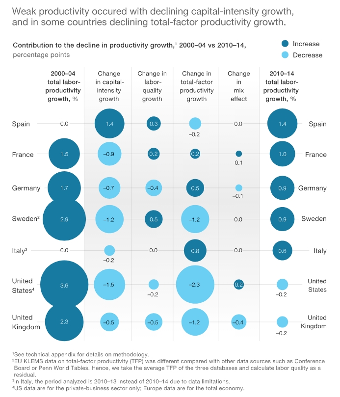 글로벌 투자은행 골드만삭스와 글로벌 컨설팅업체 맥킨지앤컴퍼니 계열의 맥킨지글로벌인스티튜트의 경제전문가들은 노동생산성의 고공행진이 최소한 향후 몇 년간 이어질 가능성에 베팅을 했다.