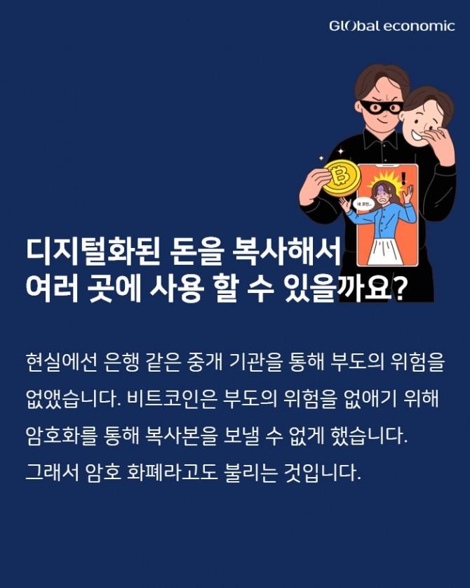 디지털화된 돈을 복사해서 여러 곳에 사용 할 수 있을까요?