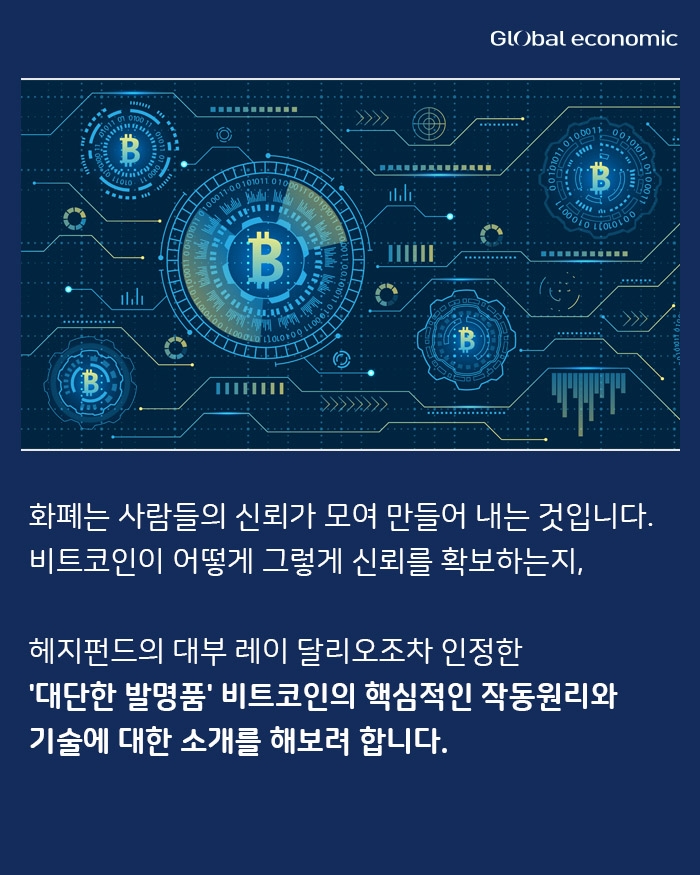 비트코인이 어떻게 그렇게 신뢰를 확보하는지, 헤지펀드의 대부 레이 달리오조차 인정한 '대단한 발명품' 비트코인의 핵심적인 작동원리와 기술에 대한 소개를 해보려 합니다.