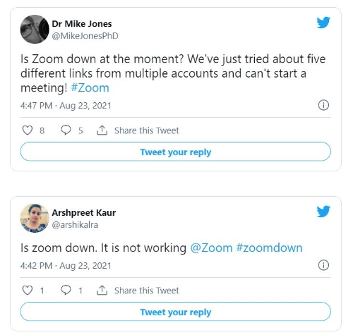 사용자들은 소셜 미디어 트위터를 통해 “회의를 시작할 수 없다”, “학교 수업에 참여할 수 없다”, “줌도 월요병(Monday blues)을 겪나보다”며 비난하고 있다.