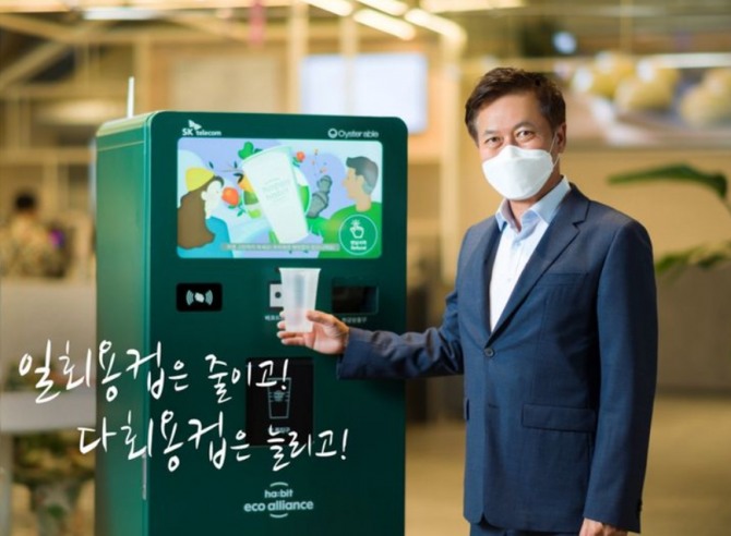 다음달 부터는 서울 을지로 본사 SK T-타워 구내 카페에서도 일회용컵 사용이 전면 중단됩니다. 이를 통해 다회용컵 도입으로 매일 700개 정도의 일회용컵 사용 감소가 전망됩니다. 올해 안에 타 사옥 구내 카페에서도 다회용컵 이용 확대될 예정이다.