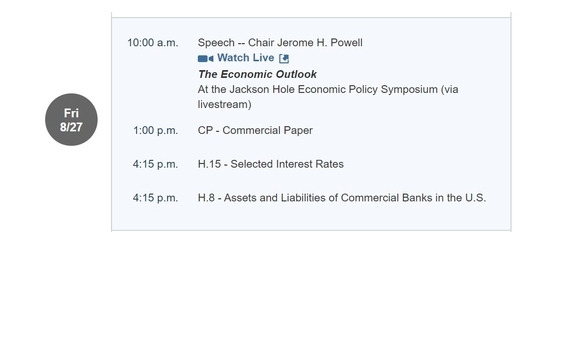 파월의장은 뉴욕증시가 가장 주목하던 테이퍼링과 관련해 "경제가 기대만큼 광범위하게 발전한다면 올해 안에 자산매입 속도를 줄이기 시작하는 게 적절할 수 있다"는 견해를 피력했다. 연설 직전 발표된 7월 근원 개인소비지출(PCE) 가격지수가 30년 만의 최대폭인 3.6% 오르는 등 각종 물가지표가 목표치인 2%를 크게 넘어서고 집값도 급등하면서 테이퍼링을 서둘러야 한다는 주장이 이어졌다. 로버트 캐플런 댈러스 연방준비은행 총재, 래피얼 보스틱 애틀랜타 연은 총재, 패트릭 하커 필라델피아 연은 총재, 로레타 메스터 클리블랜드 연은 총재 등이 조기 테이퍼링 착수를 공개 요구했다.