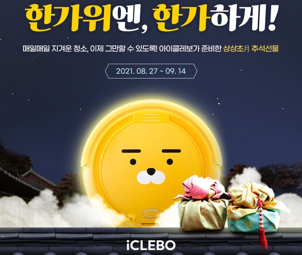 추석 연휴 만큼은 매일매일 지겹고 힘든 집안 청소는 아이클레보에게 맡기고, 한가위답게 한가하고 여유롭게 보낼 수 있길 바라는 취지로 준비됐다.