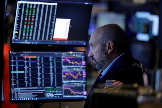 뉴욕증권거래소의 한 트레이더가 모니터를 보고 있다. 사진=로이터