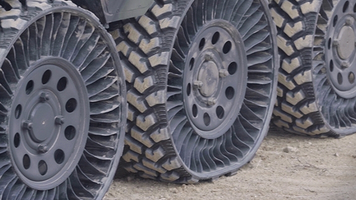 HR-셰르파에는 '에어리스 타이어(Airless Tire) 기술'도 적용된다. 이는 타이어에 공기를 넣지 않고 사용할 수 있다는 얘기다. 결국 타이어 펑크를 걱정할 필요가 없는 게 장점이다.