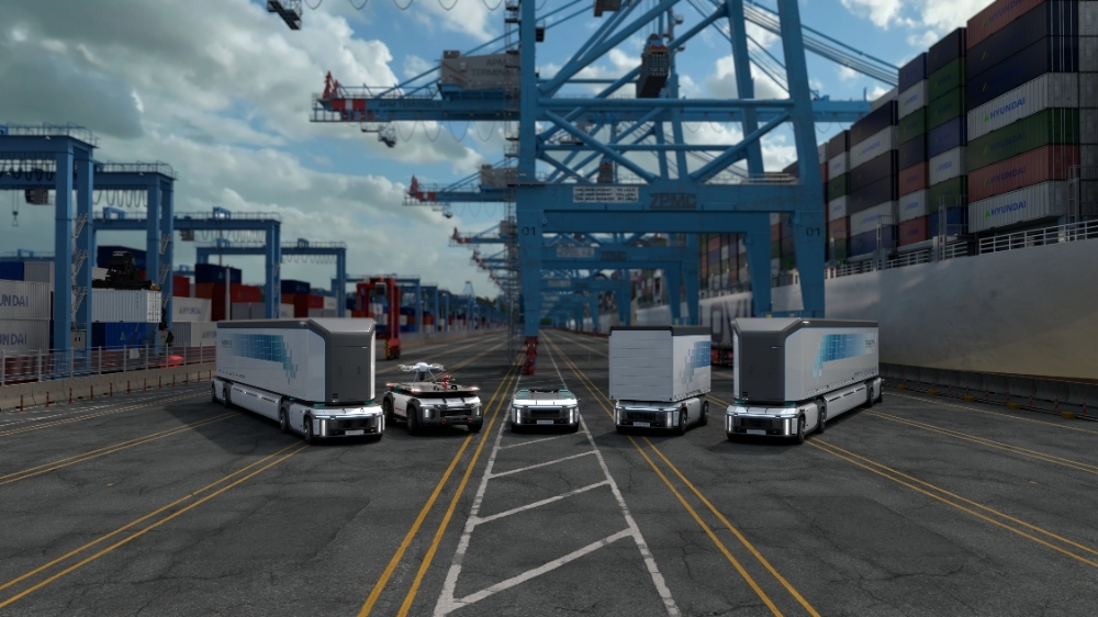 트레일러 드론은 수소연료전지와 완전 자율주행기술이 적용된 2대의 ‘e-Bogie(이-보기)’ 위에 트레일러가 얹혀 있는 신개념 운송 모빌리티다.