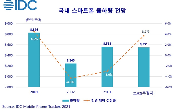 인터내셔날데이터코퍼레이션코리아(International Data Corporation Korea Ltd., 이하 한국IDC)는 상반기 국내 스마트폰 시장의 출하량은 약 856만 대로 전년 동기 대비 3.0% 감소했다고 10일 밝혔다.