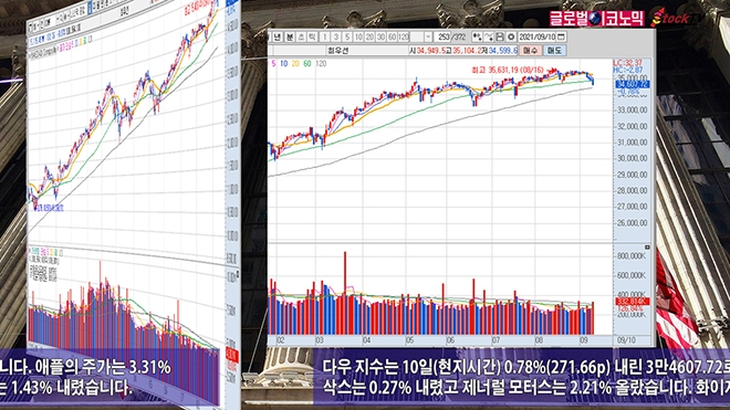 다우 지수는 10일(현지시간) 0.78%(271.66p) 내린 3만4607.72로 장을 마감했습니다. 골드만삭스는 0.27% 내렸고 제너럴 모터스는 2.21% 올랐습니다. 화이자는 0.96% 하락했습니다.