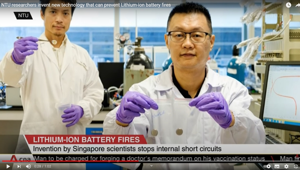 이미지 확대보기14일(현지시간) 싱가포르 일간 스트레이츠타임스에 따르면 화제의 주인공은 싱가포르판 MIT로 불리는 난양공대(NTU)의 수 지추안 소재공학부 교수가 이끄는 연구팀으로 이 팀이 처음으로 개발에 성공한 것은 충전 과정에서 화재가 발생할 위험을 차단하는 기술에 기반한 개인휴대기기(PMD)용 리튬이온 배터리.