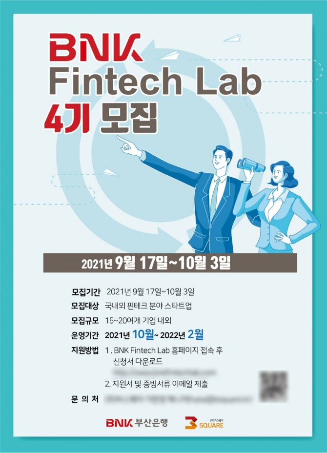 모집 대상은 핀테크 분야 스타트업이며, 오는 10월 3일까지 신청서를 접수한다. 이후 서류심사와 비대면 평가를 통해 10월 중순 15개 내외의 기업을 선정하고 내년 2월까지 총 5개월간 'BNK핀테크랩 4기'를 운영할 계획이다.
