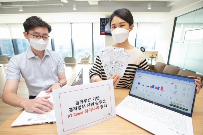 이미지 확대보기'KT 클라우드 경리나라'는 반복된 경리업무를 자동화하는 경리업무 전문 솔루션 '경리나라'를 KT 클라우드 기반으로 구현한 서비스형 소프트웨어(SaaS)다. 별도의 시스템 구축 없이 월 단위 구독형으로 이용할 수 있다는 점이 SaaS로 전환된 솔루션의 가장 큰 장점으로 꼽힌다.