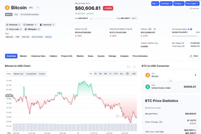 이미지 확대보기31일 뉴욕증시에 가상화폐 거래소들에 따르면 이 시각 현재 비트코인은 떨어져 6만 선이 간당간당한 상태이다. 업비트와 빗썸에서 거래되는 가상화폐 중 3분의1 이상이 24시간 전보다 내리고 있다. 비트코인은 1BTC(비트코인 단위)당 원화로 7200만 원대에 거래되고 있다. 달러베이스로는 6만 달러붕괴직전이다. 이더리움과 바이낸스코인 그리고 에이다, 솔라나도 떨어지고 있다. 폴카닷, 도지코인 루나 , 유니스왑 , 체인링크, 라이트코인, 알고랜드, 비트코인캐시, 엑시인피니티, 비체인 , 코스모스 , 트론 , 다이 등도 하락세다. 반면 리플과 스텔라루멘은 오르고 있다. 이오스, , 쎄타퓨엘, 베이직어텐션토큰, 넴, 샌드박스, 아이콘, 질리카, 앵커, 제로엑스, 랠리, 온톨로지, 왁스도 시세도 상승하고 있다. 비트코인 상장지수펀드(ETF)의 뉴욕증시 입성을 계기로 훈풍이 불던 가상화폐 시장이 조정세로 돌아선 것으로 보인다. 비트코인 시세는 지난 주 한때 6만7000달러에 바짝 다가서며 역사상 최고점을 찍었으나 이후 며칠 만에 6만 달러를 하회하기도 했다. 미국 증권거래위원회(SEC)가 비트코인 레버리지 ETF를 승인하지 않을 것으로 보인다는 시장의 전망 또한 ETF 관련 시장의 기대를 꺾었다.