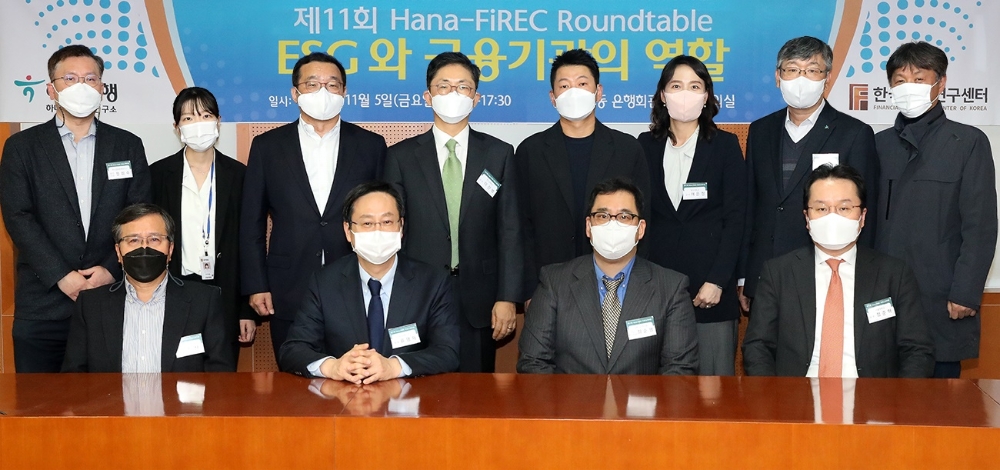 하나은행 소속 하나금융경영연구소는 지난 5일 오후 한국금융연구원 8층 대회의실에서 한국금융연구센터와 공동으로 "ESG와 금융기관의 역할"이라는 주제로 ESG가 금융산업에 미치는 영향에 대해 전문가들과 토론하는 ’제11회 라운드테이블‘ 시간을 가졌다.
