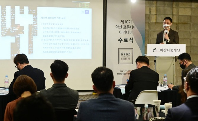 수료식에 앞서 7개월간 수행한 프로젝트 발표도 진행됐다. 수강생들은 혐오와 차별적 언어를 평소 사용하는 습관, 마스크 제조 과정에 발생하는 폐기물로 인한 환경 문제, 길거리 간접흡연 피해, 비영리 활동가 역량 공유 커뮤니티 개설의 필요, 청소년 온라인 혐오 표현 사용 등 다섯 개 문제를 발굴해 이에 대한 해결책을 제시했다.