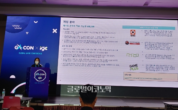 김유진 사우스웨일즈 주정부 무역투자 진흥관은 "호주는 국내에 잘 알려지지 않은 선진국으로, 높은 가능성을 지니고 있다"며 "호주의 게임 매출은 연 40억 달러(3조 4465억 원) 수준으로 영화, 방송, 음악 등보다 높은 수치"라고 말했다.