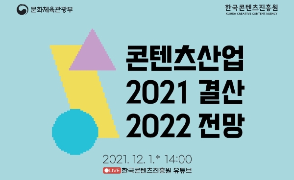 이미지 확대보기이번 세미나 명칭은 '콘텐츠산업 2021년 결산과 2022년 전망 세미나'로, 신종 코로나바이러스 감염증(코로나19) 확산 방지를 위해 비대면 온라인 방식으로 진행한다.